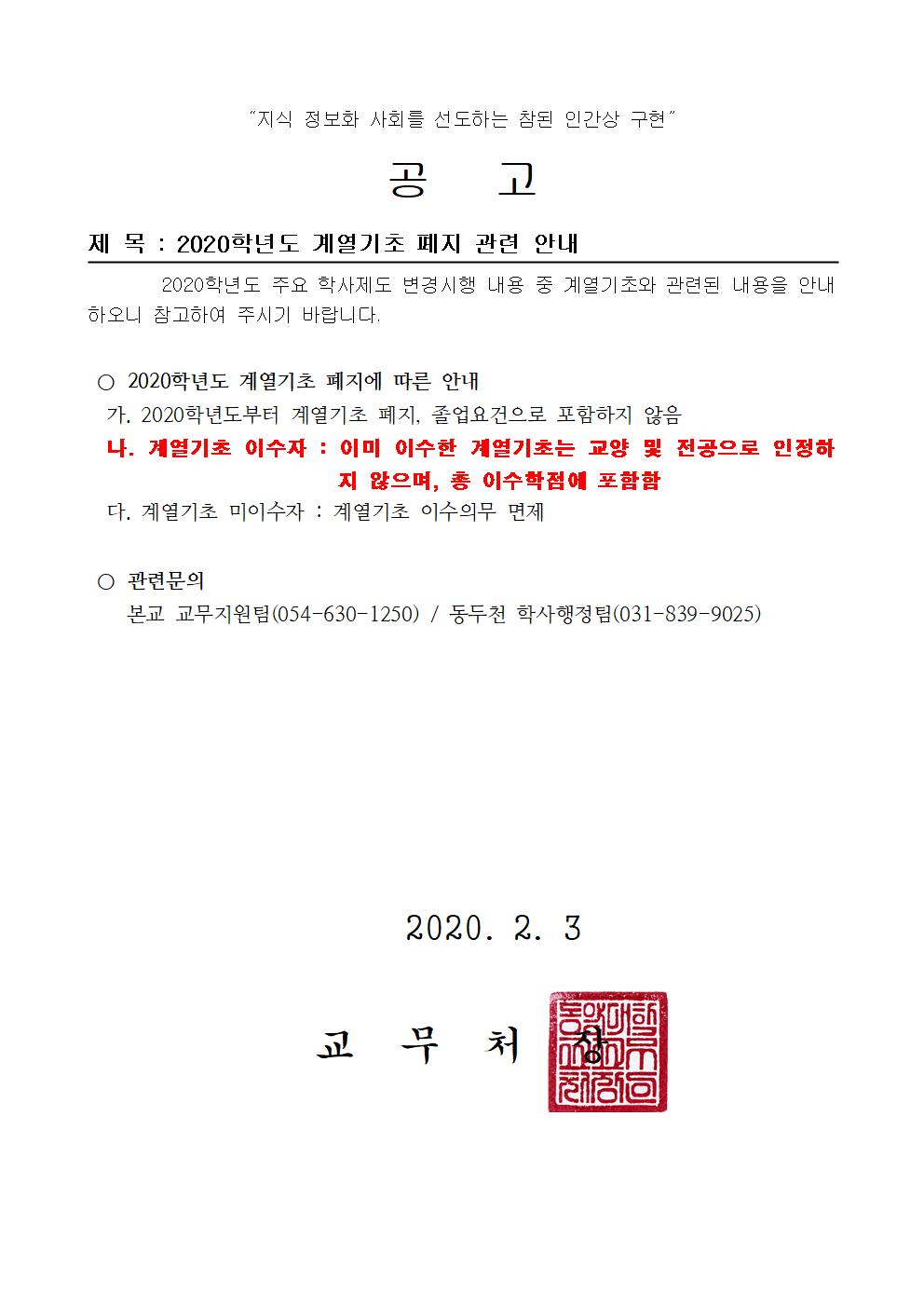 HOME > 학과공지 > [공지]2020학년도 계열기초 폐지 관련 안내 커뮤니티학과공지 자료실 학과소식 갤러리 학생활동 페이스북 학과공지 [공지]2020학년도 계열기초 폐지 관련 안내 목록보기