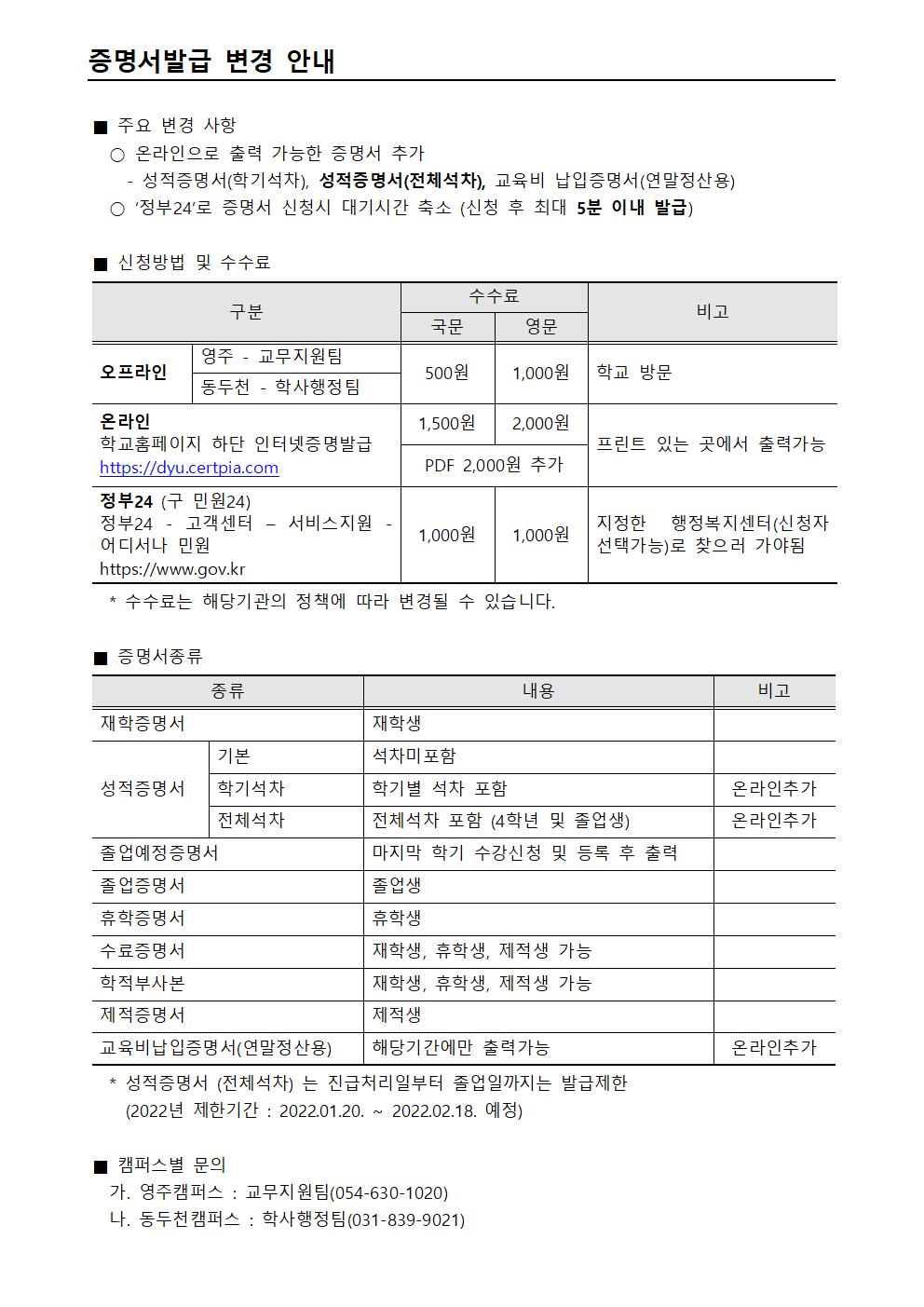 > 학과공지 > 증명서 온라인 발급 추가 안내